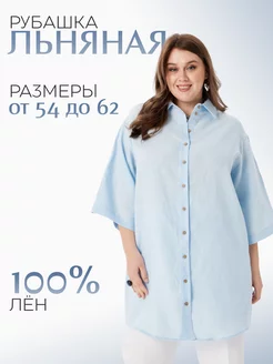 Рубашка льняная удлиненная летняя оверсайз большие размеры