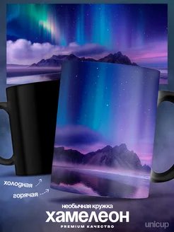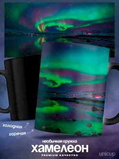 Красивая милая кружка хамелеон с рисунком северное сияние