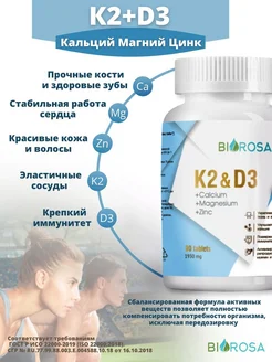 Витамин K2 Д3 Кальций Магний и Цинк 90 шт БАД