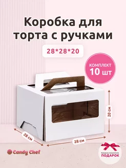 Коробка для торта с окном и ручками 28*28*20 см, 10 шт