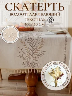 Скатерть водоотталкивающая тканевая с вышивкой 100х160 см