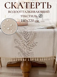 Скатерть водоотталкивающая тканевая с вышивкой 140х220 см