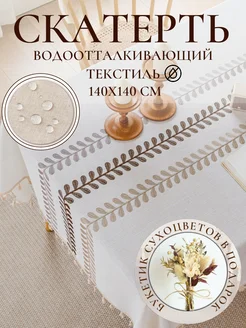 Скатерть водоотталкивающая тканевая с вышивкой 140х140 см