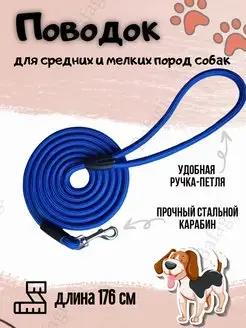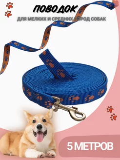 Поводок для средних и мелких пород собак 5 м, сине-оранжевый