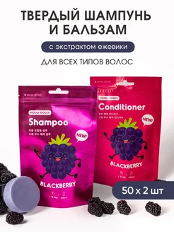 Дорожный набор твердый шампунь и бальзам для волос Ежевика