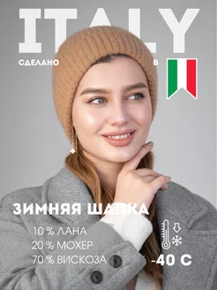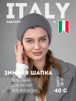 Шапка Италия с отворотом бини теплая зимняя базовая теплая