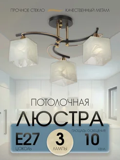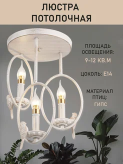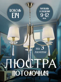 Люстра потолочная в спальню, светильник с белыми абажурами