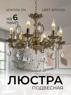 Люстра потолочная подвесная хрустальная бронзовая в зал