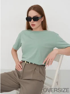 Футболка женская базовая зеленая однотонная хлопок