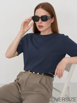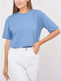Футболка женская базовая синяя однотонная хлопок