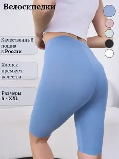 Велосипедки женские хлопок синие с высокой посадкой