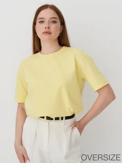 Футболка женская базовая желтая однотонная хлопок