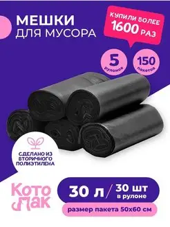 Мешки для мусора 30 литров 5 рулонов 50х60 150 штук