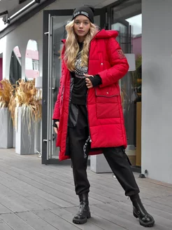 Пуховик зимний длинный с капюшон