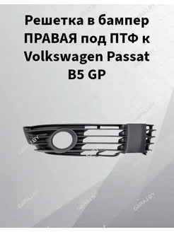 Решетка в бампер ПРАВАЯ под ПТФ к Volkswagen Passat B5 GP