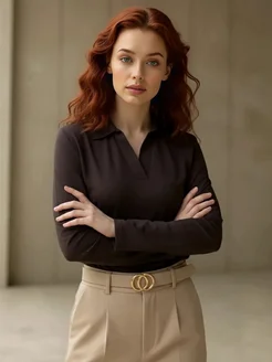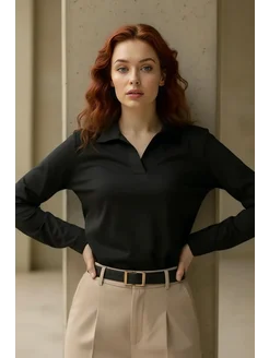 Лонгслив поло базовый с вырезом однотонный