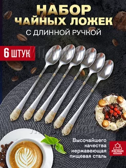 Набор чайные ложки с длинной ручкой набор 6 штук