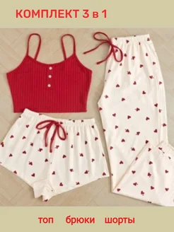 Пижама женская тройка со штанами и шортами