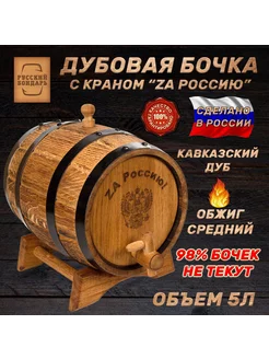 Дубовая бочка 5 литров "ZA Россию"
