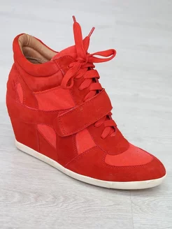 Демисезонные кожаные ботинки на танкетке сникерсы