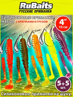 Силиконовые приманки на щуку виброхвост с оснасткой 10 шт