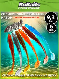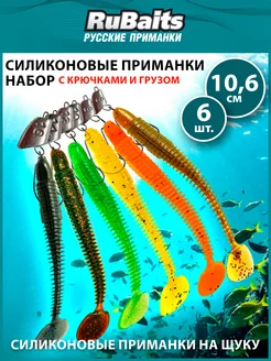 Силиконовые приманки виброхвост на щуку с оснасткой 6 шт