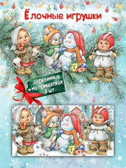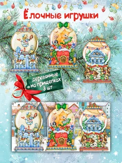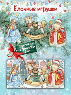 Новогодние елочные деревянные игрушки на елку Дед Мороз
