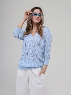 Кофта вязаная ажурная весна-лето рукав 3 4