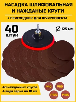 Насадка шлифовальная на липучке 125мм и наждачные круги 40шт