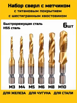 Набор сверл-метчиков с титановым покрытием 6 шт