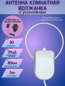 Антенна для телевизора комнатная с усилителем Волжанка 12V