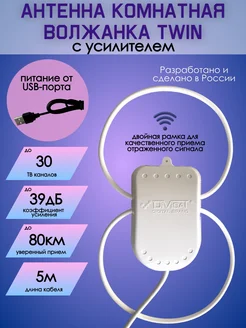 Антенна для телевизора комнатная Волжанка TWIN USB 5м