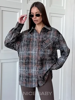 Рубашка в клетку оверсайз y2k коричневая со стразами