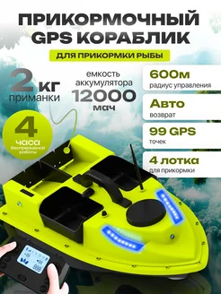 Прикормочный кораблик для рыбалки с GPS 12000 мАч 4 лотка