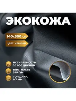 Экокожа матовая черная 500 х 140 см толщина 0.7мм