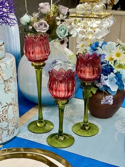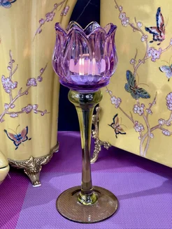 Подсвечник тюльпан фиолетовый 80x80х185мм