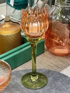 Подсвечник тюльпан оранжевый 80x80х215 мм