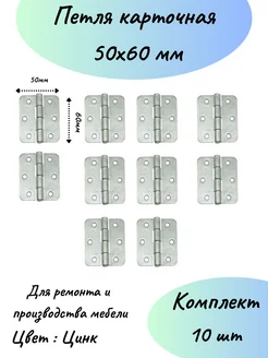 Карточная петля 50 мм на 60 мм мебельная-10шт