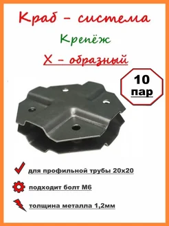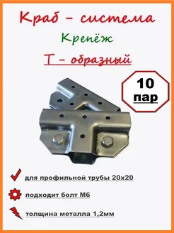 Краб система для профильной трубы 20х20 Тобразный 10пар 20шт