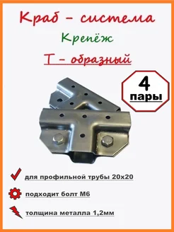 Краб система для трубы 20х20 Т-образный 4 пары металл 1,2мм