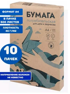 Бумага писчая потребительская А4, Газетная, 500 л 10 пачек