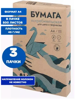 Бумага писчая потребительская А4, Газетная, 500 л 3 пачки