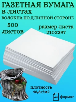 Бумага писчая потребительская А4, Газетная, 500 л 1 пачка