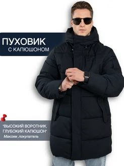 Пуховик мужской удлиненный с капюшоном до -30 градусов