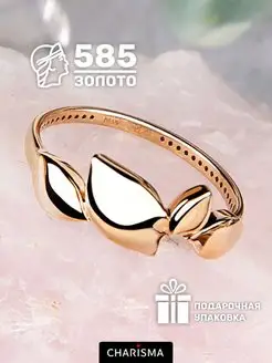 Нежное золотое кольцо 585 листики объемное тонкое