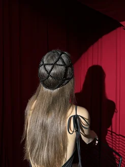 Черная шапка кроше из бусин