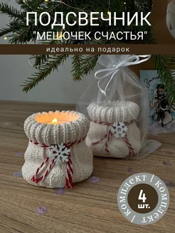 Новогодний декоративный подсвечник "Мешочек счастья" 4 штуки