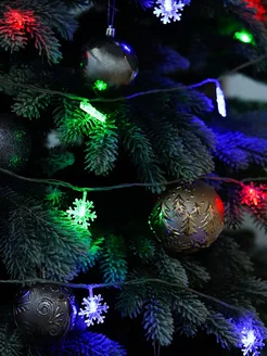 Гирлянда на елку снежинки 5м нить новогодняя светодиодная
