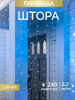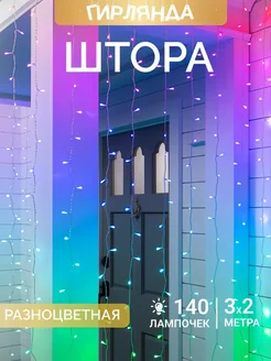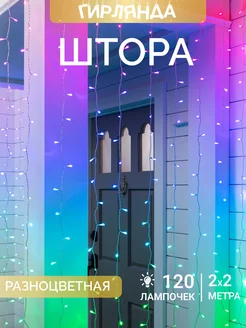 Гирлянда штора 2х2 м разноцветная новогодняя на окно занавес