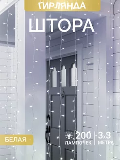 Гирлянда штора 3х3 м белая новогодняя на окно занавес